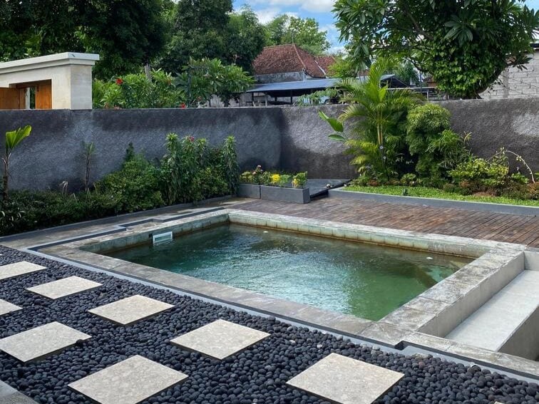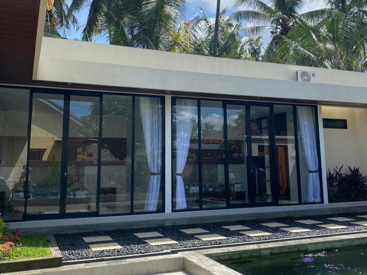 - Fasilitas : AC, 2 Kamar Tidur, 2 Kamar Mandi, Kolam Renang, Dapur, Ruang Makan, Ruang Tamu, Halaman, Area Parkir