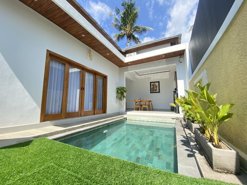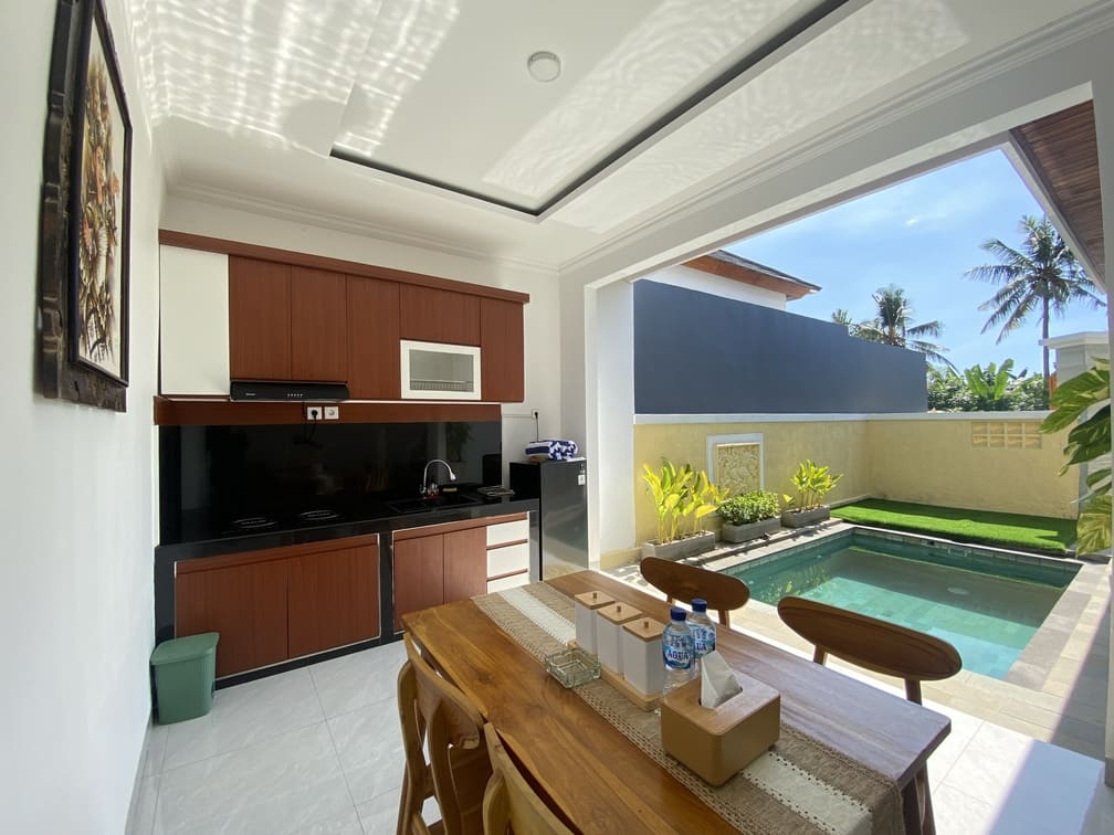 - Fasilitas : AC, 2 Kamar Tidur, 2 Kamar Mandi, Kolam Renang, Dapur, Ruang Makan, Ruang Tamu, Halaman, Area Parkir